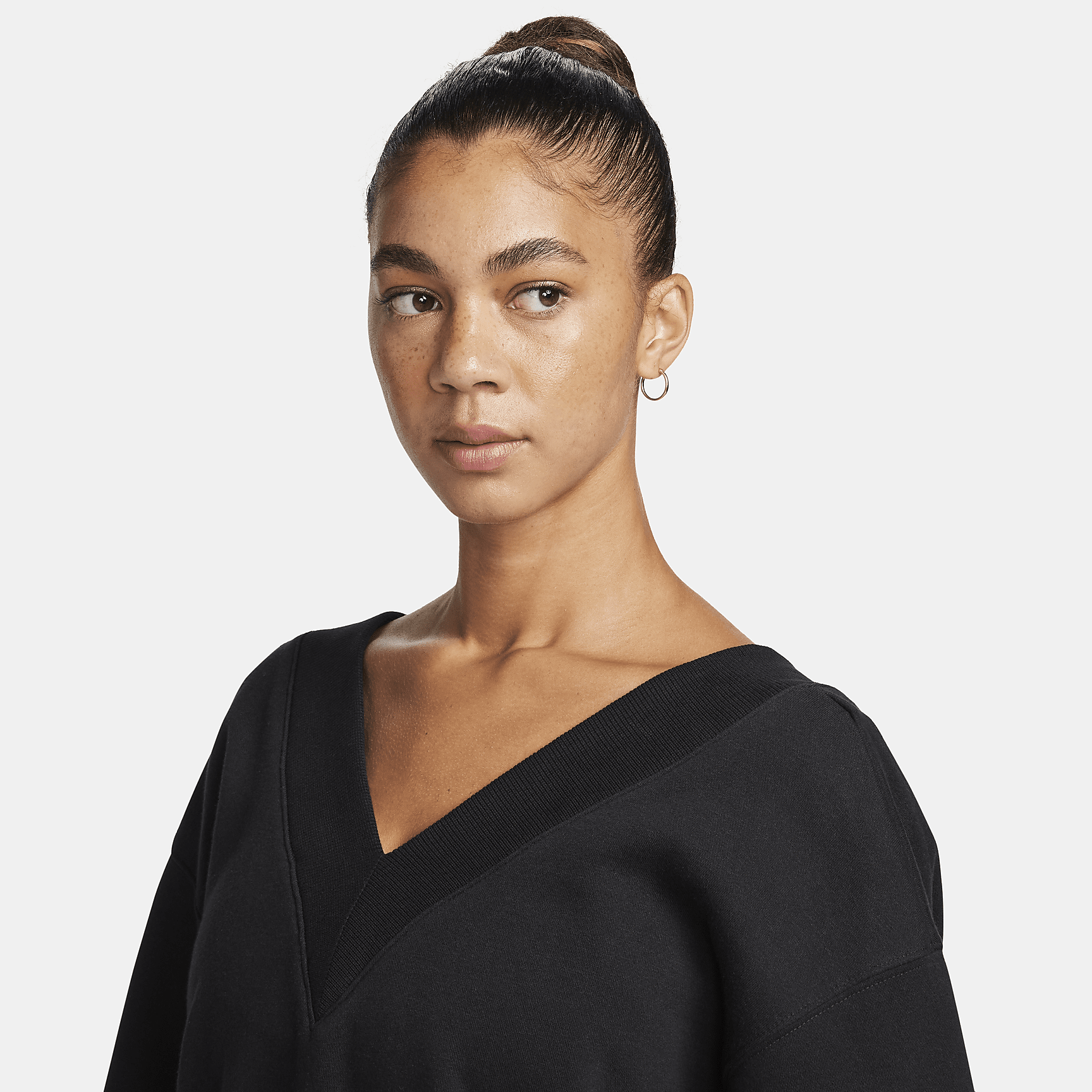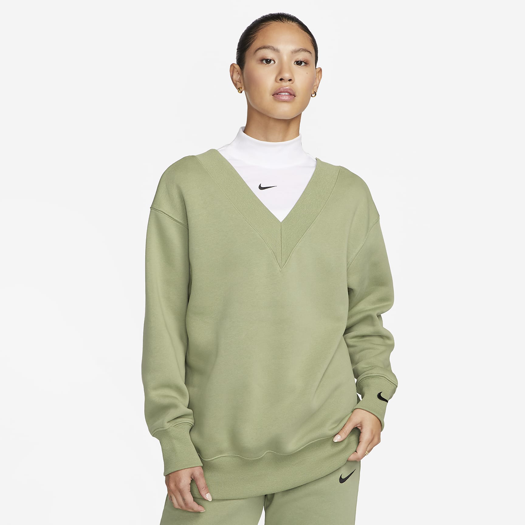 Rise up and transform your fleece wardrobe with comfy vibes. The oversized fit and double V neckline ensure your look is anything but basic. Our midweight brushed fleece feels extra soft on the inside and smooth on the outside, helping you stay cozy while keeping its structured shape.